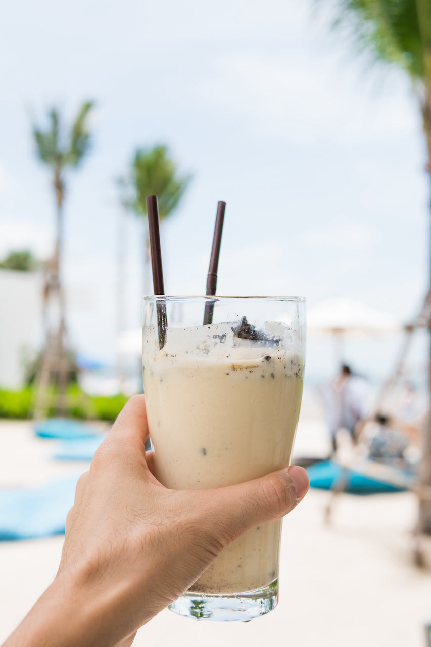 Tightly screw on the lid and blend until creamy.Add to cocktail glass with ice.
